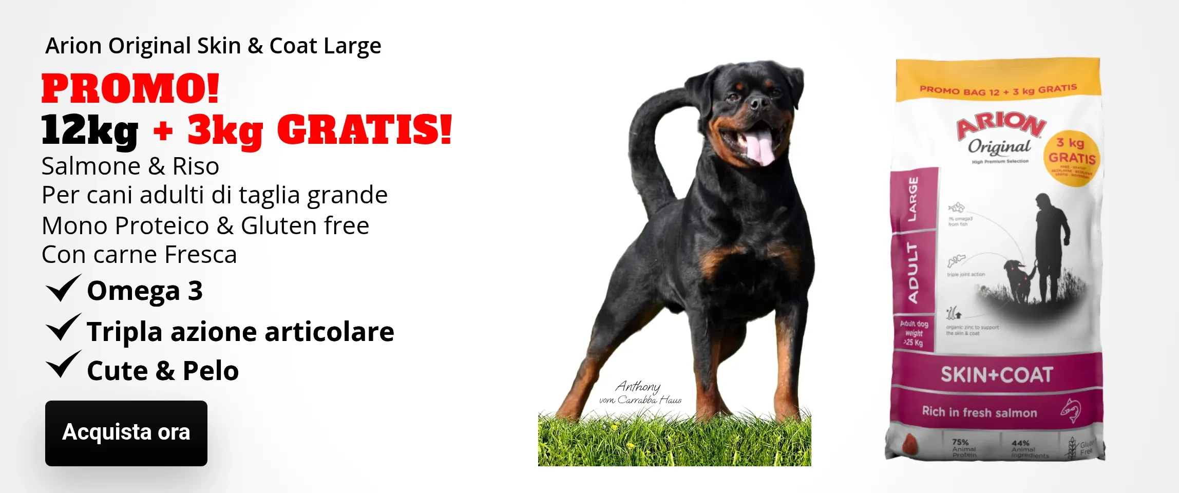 Arion Original Skin & Coat Large Breed (24/14) Alimento secco completo con salmone & riso. Ricetta senza glutine altamente digeribile per...
